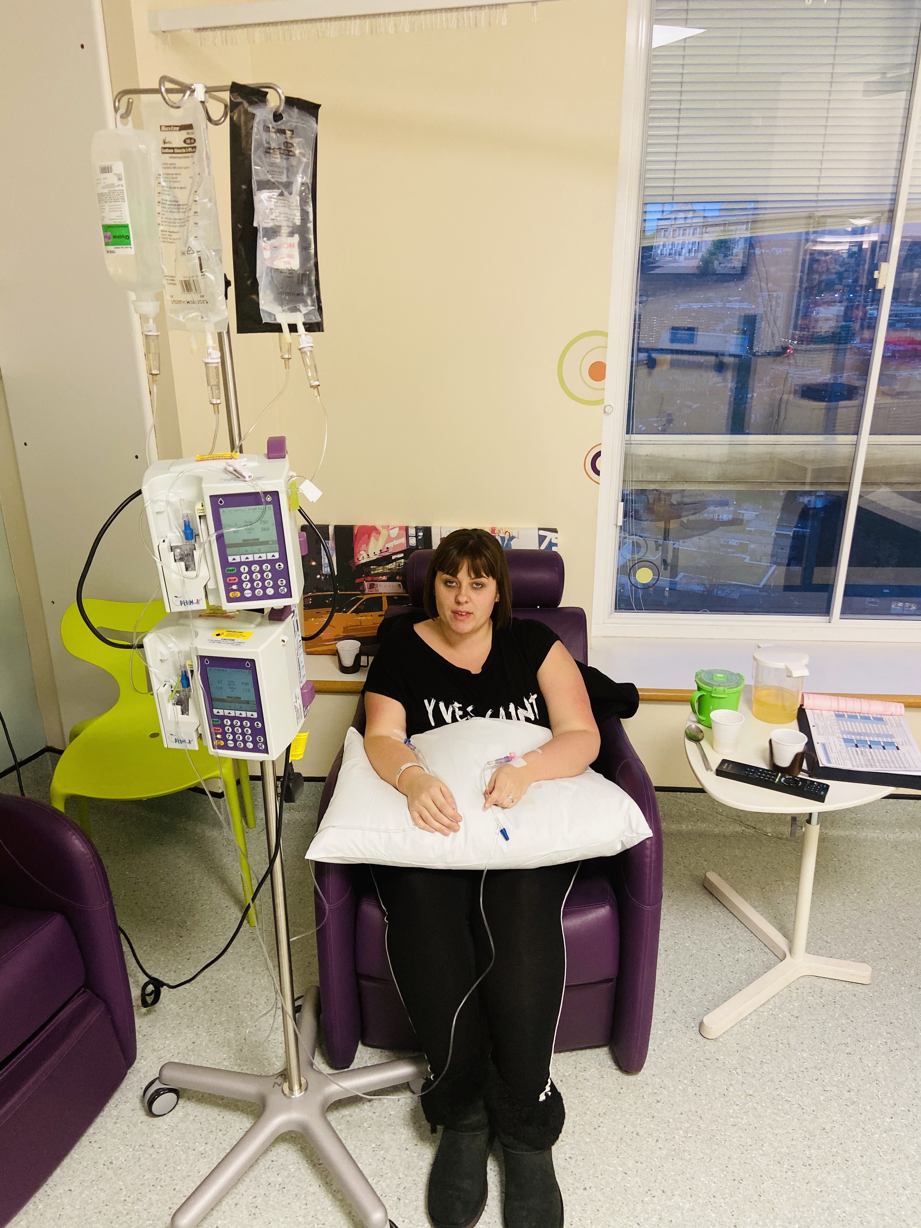 Arrived at hospital at 8am got hooked up to the drip machine and I don’t think I realised how much fluid I was going to have! I was hooked up to hydration fluids for 5 hours then had a short burst of steroids and anti-sickness drugs to support the bladder and prevent water infection, before the chemotherapy was eventually hooked up and administered. I was then moved to a ward where I continued to have hydration fluids for 24 hours. The number of times I have been to the toilet is ridiculous! And every time it had to be in a disposable toilet pan so the ratio of fluid input and output could be measured.