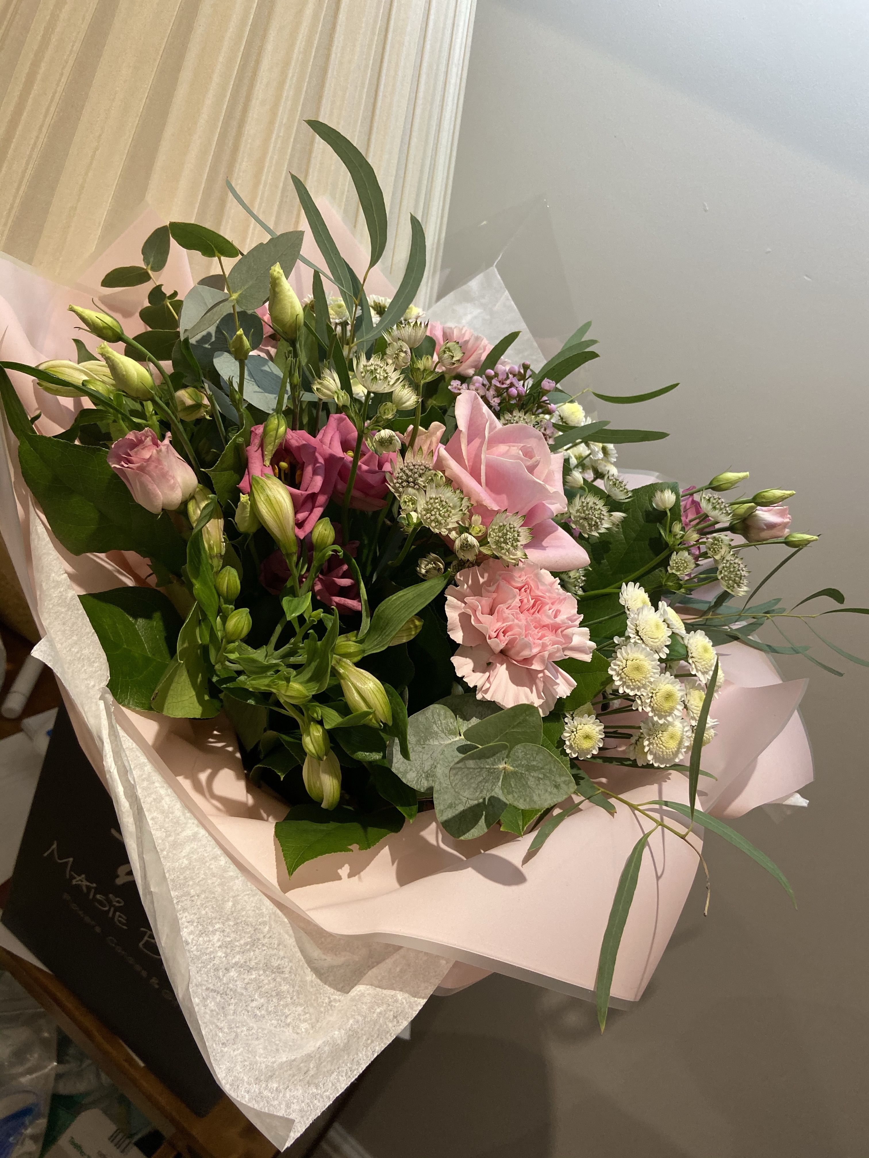 Walked in to a beautiful bunch of flowers at home from my work colleagues – they are the best.